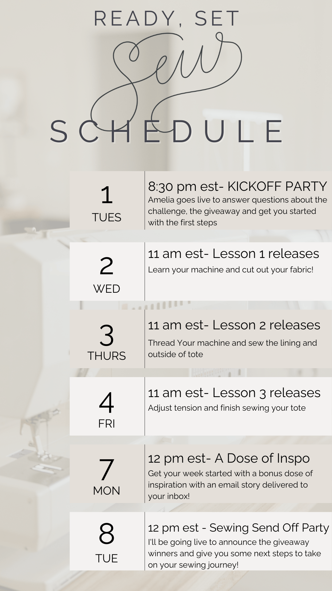 In three simple days of lessons, I take your hand and walk you through the steps to get you feeling confident and actually sewing when you sit down in front of your machine.
